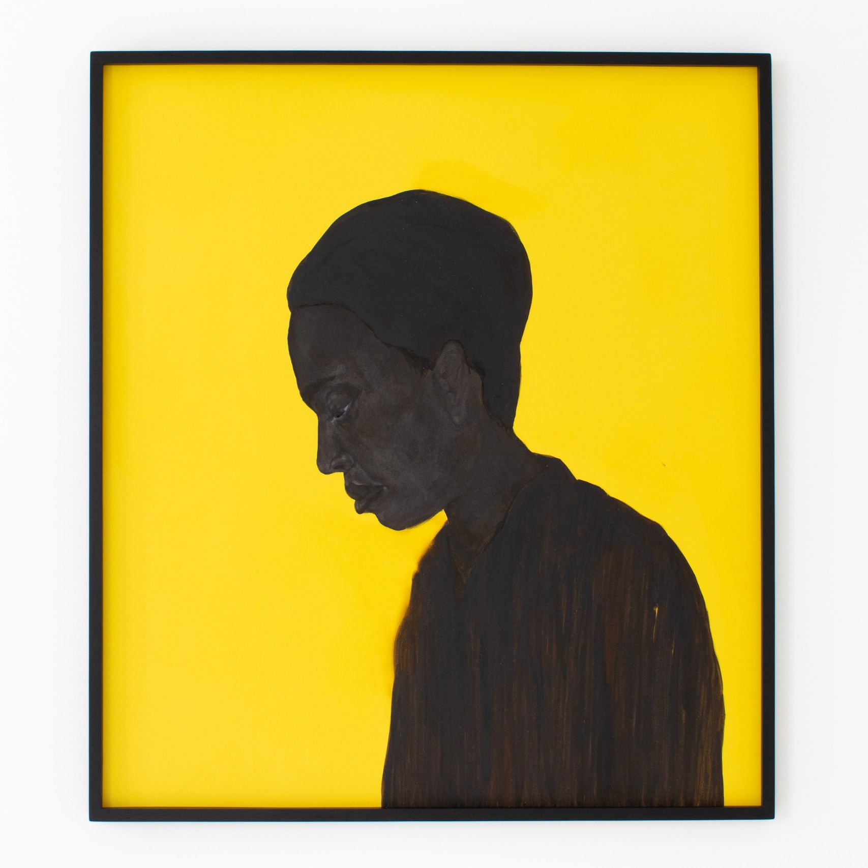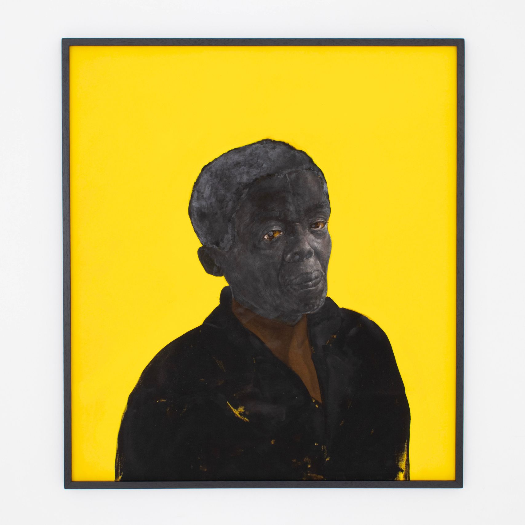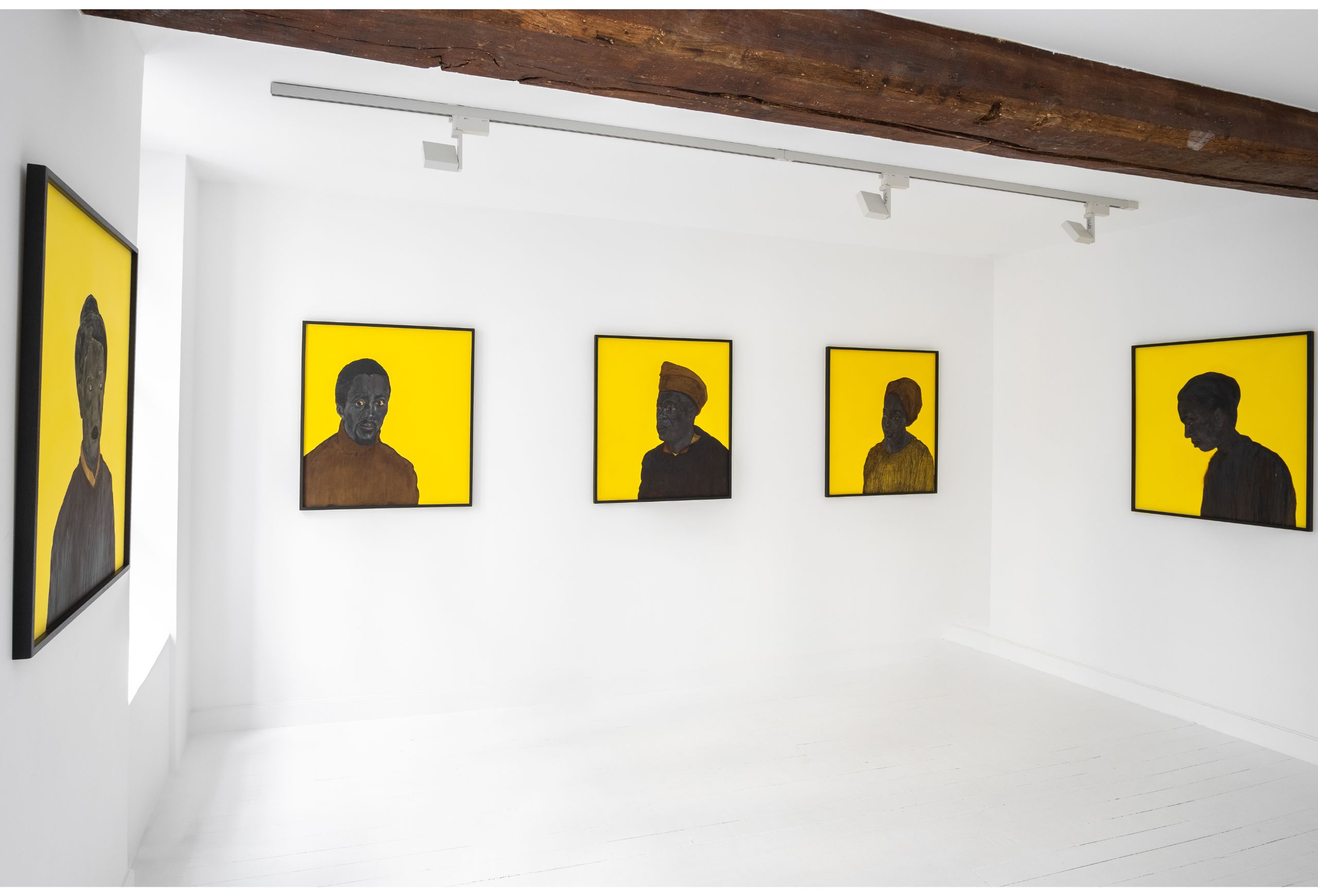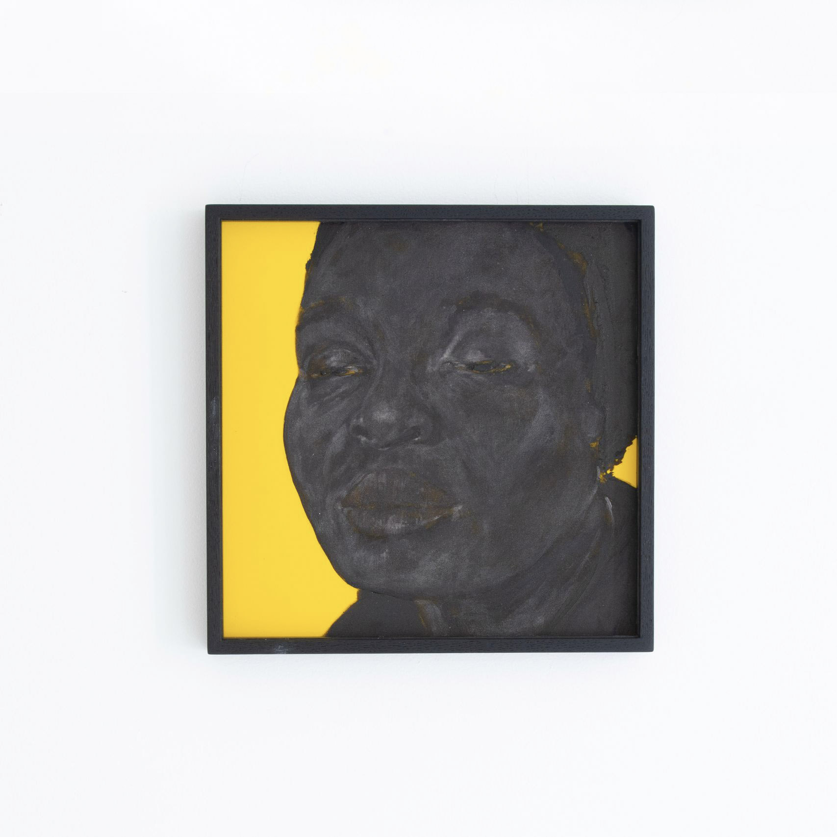 Dans des formats plus petits, l’artiste donne aussi à voir des visages contemporains, qu’il qualifie de « noirs d’aujourd’hui ». Ces portraits silencieux, sans ancrage spatial, résonnent comme des présences suspendues – à la fois incarnées et absentes, témoins d’une identité sans cesse réécrite, fracturée, fragmentaire.